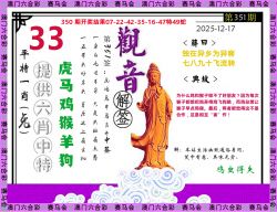 351期开奖时间2025年12月17 星期三)晚9:30开(农历十月廿八 猴冲虎)